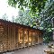 北海道神宮御鎮斎百五十年式年にあたり、記念事業の一環としてこの「神宮茶屋」は計画されました。 60uという小さな空間ですが、近年多様化する参拝者への休憩・利便施設を提供することと、心地よい空間をつくることで北海道神宮というところがより身近な場となることを目指しています。 床の石以外は全て北海道素材でつくられていて、構造材はカラ松の集成材やヒバ・ヒノキ類。外壁や内装は道南杉、家具はナラ材となっています。 そしてこの神宮の杜から古木となって伐採された材料も丁寧に製材をし、 館名板、一部の外壁材や外の椅子・テーブルに使用されています。 |